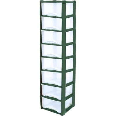 Neat. 8 Plastic Storage Drawers Unit with See Through Drawers, Compact Vertical Design Durable Plastic, Ideal for Organizing Office Crafts, and Household Items, 160cm x L39cm W39cm Dark Green