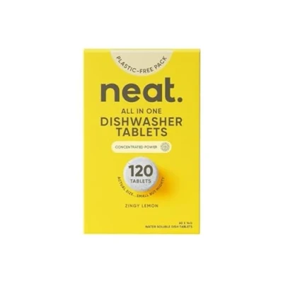 Neat Eco Dishwasher Tablets (120 Pack) Powerfully Plant Based, Plastic Free Packaging for Sparkling Clean Dishes Natural Cleaning Solution