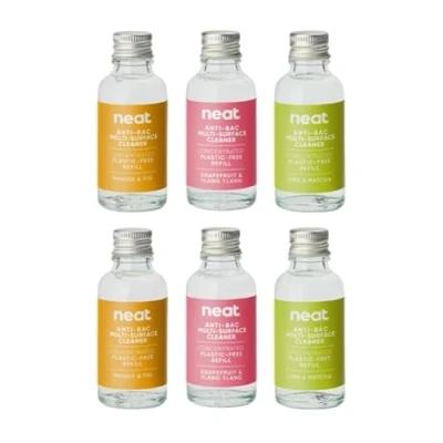 Neat Eco Friendly Multi Surface Antibacterial Cleaning Spray Refill Kit Mango & Fig, Grapefruit Ylang Lime Matcha Scent, Minimal Solution for Home (6x 30ml Concentrate Bottles)