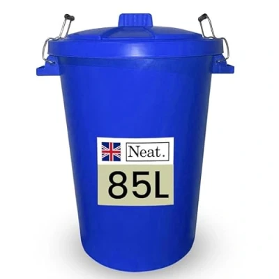 Dustbin with Clip Locking Lid: The Neat Plastics Extra Large Plastic Dustbin is a durable and spacious 85-litre container designed to handle substantial amounts of waste. With its robust plastic construction and large capacity, this bin is an excellent choice for handling large volumes of rubbish and recycling. Secure Clip Locking Lid: This dustbin is equipped with a sturdy clip-on lid that securely locks in place, preventing any spills or accidental openings. The reliable locking mechanism also effectively keeps pests and animals away, ensuring that your waste, recycling materials, or animal feed remains clean, contained, and protected from contamination. Versatile Use: Beyond its primary functions of managing rubbish and recycling, this dustbin is highly versatile. It can also be used for storing animal feed, gardening tools, or other bulky items, making it a practical choice for a wide range of uses around the home or farm. Heavy-Duty Construction: Made from durable plastic, this dustbin is built to withstand harsh weather conditions and heavy usage. Its sturdy design ensures it resists impacts and maintains its integrity, making it suitable for long-term outdoor use in various environments. Easy to Maintain: The smooth, non-porous surface of the dustbin makes cleaning and maintenance straightforward. Simply wipe down the interior and exterior to remove any debris or stains, ensuring that the bin remains in excellent condition and ready for frequent use.