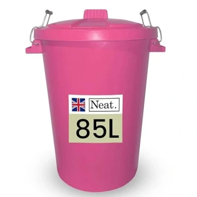 Neat. Extra Large Plastic Dustbin with Clip Locking Lid Heavy Duty Garden Bin for Rubbish, Recycling, Animal Feed, and Storage, 85 Litre, Pink, Pack of 2