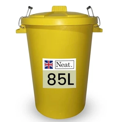 Neat. Extra Large Plastic Dustbin with Clip Locking Lid Heavy Duty Garden Bin for Rubbish, Recycling, Animal Feed, and Storage, 85 Litre, Yellow, Pack of 1