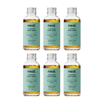 Neat Hand Wash Refills Green Tea & Bergamot, 6x 30ml Powerfully Plant Based Refillable Soap, Eco Friendly Foaming Handwash Refill