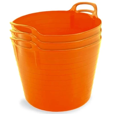 Neat Plastics 42L Flexi Tubs 3 Packs Versatile Large Garden with Handles, Handy Builders Buckets Heavy Duty, Ideal Bath Bucket & Bucket, Durable Flexible for Home (Orange)