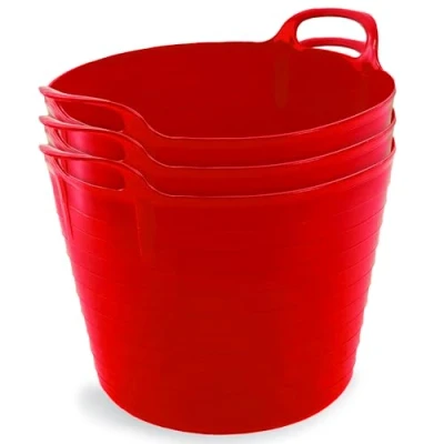Neat Plastics 42L Flexi Tubs 3 Packs Versatile Large Garden with Handles, Handy Builders Buckets Heavy Duty, Ideal Bath Bucket & Bucket, Durable Flexible for Home (Red)