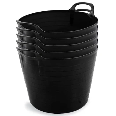 GENEROUS 42L CAPACITY: Dive into a clutter-free life with our large tub, ideal for laundry storage, toy tidying, and DIY mixes. With dimensions of 480mm in width and 340mm in height, it's your spacious solution for a more organized home and workspace. Perfect for use as a bathroom bin or for cement and plaster mixing. FLEXIBLE & HANDY: Wave goodbye to awkward lifting with our flexi tubs with handles, featuring two integrated handles for a comfy one-handed grip. Effortlessly transport garden supplies or household items, making this large buckets for car washing with handles your go-to for lighter work. Also great as a washing bucket or plasterers bucket. SPACE-SAVING DESIGN: Our stackable large buckets plastic design champions tidiness in your living space. Its clever build allows for compact storage, boosting efficiency and organization in any home or garden. An essential storage bucket that doubles as a plastering bucket, ensuring you save space while staying organized. VERSATILE USE: This all-purpose tub shines in home organization and garden tasks alike. Whether it's a garden buckets need, acting as a plumbers bucket, or a handy wash bucket, its adaptability makes it indispensable. Ideal for a wide range of uses, from gardening bucket chores to being a reliable heavy duty bucket for any task. MADE IN THE UK WITH PREMIUM LDPE: Discover lasting durability with our large plastic tubs, made in the UK from high-quality LDPE. A steadfast companion for house and garden duties, promising durability as a large bucket or water bucket. Its build quality ensures this flex tub stands the test of time, offering reliability for years.