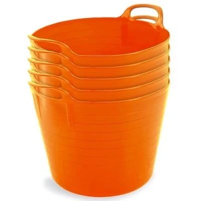 Neat Plastics 42L Flexi Tubs 5 Packs Versatile Large Garden with Handles, Handy Builders Buckets Heavy Duty, Ideal Bath Bucket & Bucket, Durable Flexible for Home (Orange)