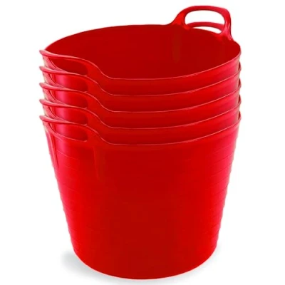Neat Plastics 42L Flexi Tubs 5 Packs Versatile Large Garden with Handles, Handy Builders Buckets Heavy Duty, Ideal Bath Bucket & Bucket, Durable Flexible for Home (Red)