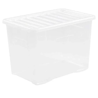 Clear Heavy-Duty Plastic Storage Box: This clear heavy-duty plastic storage box is designed for versatile use in both home and office settings. Ideal for organizing a wide range of items, from paperwork and craft supplies to household goods, it helps maintain an orderly space by securely containing and protecting your belongings. Robust Construction for Durability: Made from sturdy, heavy-duty plastic, these storage boxes are built to withstand frequent handling and heavy loads. Their durable construction ensures they can hold a variety of items without cracking or breaking, providing a reliable storage solution for demanding environments. Transparent Design for Easy Identification: The fully clear plastic design allows for instant visibility of the contents, making it easy to see what’s inside without opening the lid. This feature enhances organization by eliminating the need to open each box to locate specific items, thus streamlining your search process. Stackable and Nestable for Space Efficiency: These storage boxes stack securely to maximize vertical space and keep your area organized. When not in use, they nest inside each other, reducing their footprint and saving space. This dual functionality ensures efficient use of space whether the boxes are in use or stored away. Secure Lids for Protection: Each box is equipped with a clear lid that ensures a tight seal to protect contents from dust, dirt, and damage. The lid also allows for easy access with its user-friendly design, combining convenience with effective protection for your stored items.