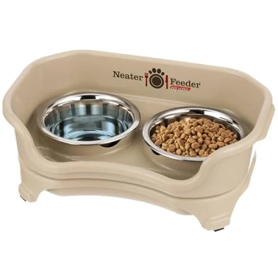 Neater Feeder Express Elevated Cat Bowls by Pet Brands with Stand Stainless Steel Food and Water Raised Bowl Set for Cats, Almond
