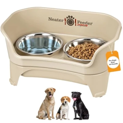 Neater Feeder Express Elevated Dog Bowls by Pet Brands with Stand Stainless Steel Food and Water Raised Bowl Set for Medium to Large Dogs, Almond