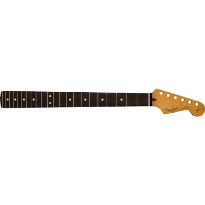 Maple Stratocaster neck with walnut stripe 9.5"-radius maple or rosewood fingerboard 22 narrow-tall frets; black dot inlays Satin urethane "super natural" back finish with gloss headstock Pre-slotted bone nut