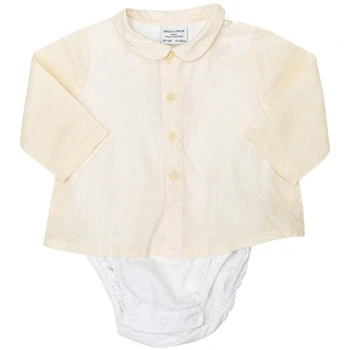 Bodysuit with long sleeve shirt. Shirt. Lapel collar. Button closure at the front. Bodysuit. Click closure on the front and crotch Seams seen in tone. Composition: 100% cotton. Care: - Wash at max. 30ºC. - Do not use bleach. - Iron at low temperature. - Supports dry cleaning. - Do not use dryer.