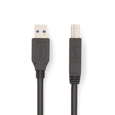 NEDIS USB A Male to B Cable, Durable PVC Connectors, Copper Cores, Supports 5Gbps Transfer Rate, 2.0m