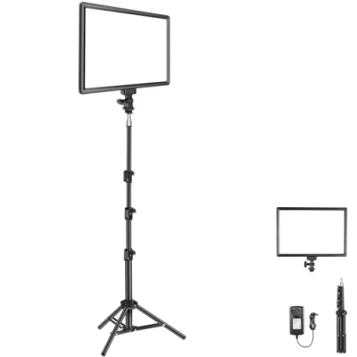 NEEWER 13" LED Video Light Panel, Studio Lighting Kit with Tripod Stand, Dimmable Bi Color Photo Key for Streaming Photography Podcast Recording, 3200 5600K CRI97+ 2400Lux/0.5m 8000mAh, NL 192AI