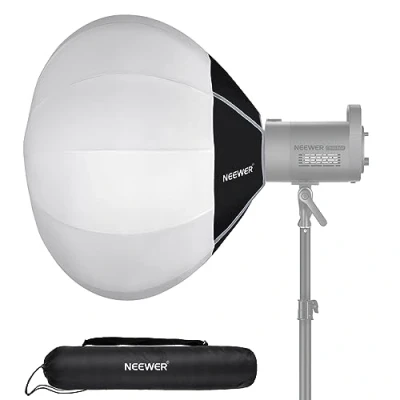 【360° Omnidirectional Soft Light Source】 This 26"/65cm NEEWER lantern softbox provides a broad, balanced, and 360° light coverage without shadows, ideal for photography, vlogging, live streaming, and interviewing. It can close at 7"x7"x31.5" (17x17x80cm) and fit inside the storage bag for easy transport 【One Step Quick Release & Fold】 Designed with an integrated structure, the softbox allows for instant opening and closing with just one simple step. Enjoy seamless lighting control at your fingertips, saving you time and effort. It's a more convenient and efficient alternative to traditional versions 【12 Resilient Ribs & Superior Diffuser】 12 highly resilient ribs can withstand tens of thousands of presses without distortion, giving this softbox incomparable durability and an impeccable lantern shape for 360° omnidirectional light output. The diffuser with highly reflective linings can retain the genuine color rendition and color temperature of any light source 【Lightweight Nylon Alloy Bowens Mount】 The standard bowens mount is compatible with a wide array of Bowens mount LED video lights, including NEEWER RGB CB60, CB60B, CB200B, MS60B, MS60C, MS150B, and more. The nylon alloy Bowens mount also makes the softbox lighter (27.5oz/780g) and more portable 【Package Contents】 1 x 26"/65cm Lantern Softbox, 1 x Storage Bag, 1 x User Manual 【More From NEEWER】 Use this softbox with NEEWER Q4 Studio Flash Vision 4 Monolight and CB60B CB60 RGB CB100 C CB150 CB200B CB300B FS150 FS150B FS230 COB Studio Light (Also compatible with SmallRig compatible with Godox compatible with Aputure Continuous Video Light with Bowens Mount). We recommend ST250R ST-260AC Photography Light Stand & SC320 NEEWER C Stand with Boom Arm to provide exceptional strength for heavy duty use