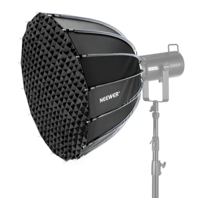 【Professional Parabolic Softbox】 This deep, parabolic softbox features an opening size of 27.6" x 19.7" / 70 x 50cm, with a smooth, even silver internal coating on the thickened nylon cloth that broadens, diffuses, and softens light while retaining the original color rendition. Includes two layers of light diffusers and a honeycomb grid for optimal output 【Lightweight Nylon Alloy Quick Folding Design】 Pull up the ribs to unfold and lock this softbox in seconds, then just push and hold the quick release buttons to fold up. 16 highly resilient ribs bring incomparable durability and an impeccable shape that can withstand tens of thousands of presses without deformation. Even the mounting plate is upgraded with nylon alloy to ensure its lightweight yet durable design that is robust, rust resistant, and can withstand daily wear 【Honeycomb Grid & Diffusers】 The internal and external diffusers can be combined for an even softer and more diffused light, and can be fastened via touch fasteners for easy assembly. The honeycomb grid directs light at 45° and reduces spill, providing a distinctive soft yet punchy lighting effect that defines the model's facial structure 【Standard Bowens Mount】 Seamlessly compatible with Godox SL60w compatible with Apture 120D 60D compatible with Amaran 100x 150c 600d NEEWER Q4 Vision 4 CB200B RGB CB60 MS60B MS60C MS150B S101-300WPRO/400W Pro and other Bowens mount studio strobe lights and continuous LED video lights 【Portable Drawstring Bag】 At merely 3lb/1.38kg, this collapsible softbox can be folded and is easy to store and transport inside the included drawstring bag. Perfect for portraits, product photography, beauty & fashion shoots, weddings, corporate headshots, and other photography styles