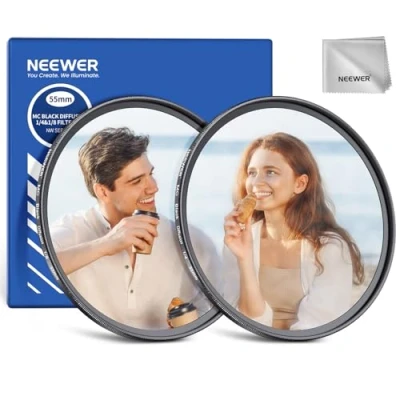 NEEWER 55mm 1/4 & 1/8 Black Diffusion Camera Lens Filter 2 Pack Set, Mist Cinematic Effect Multicoated Glass Storage Case Cleaning Cloth, for Dreamy Misty Portrait Photography Video