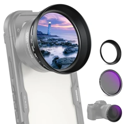 【For 65mm Telephoto Phone Lens】 For NEEWER 65mm Telephoto Phone Lens. Also compatible with iPhone 17 Pro Max, 16 Pro Max, 15 Pro Max, Galaxy S25 Ultra, and 58mm camera lenses 【Accurate Exposure Control】 With 1-5 stops of adjustable light reduction, this variable neutral density filter can better control exposure and shutter speeds, and create dynamic motion blur when capturing rivers, waterfalls, and light trails 【Dedicated Lens Hood Shade】 The lens hood effectively blocks stray light to enhance image quality. It reduces glare during backlight, sidelight, and flash photography, and prevents ambient light from affecting the shots in spotlight or nighttime shooting 【Multiple Resistant Coatings】 Multiple protective coatings on both sides of the filter resist water, fingerprints, smudges, dust, and scratches for reassuring durability and effortless maintenance. A cleaning cloth is included 【Solid Aluminum Alloy Frame】 Crafted from black anodized aluminum alloy, the slim and rigid frame can withstand rust, scratches, and minor impacts during outdoor creation as content creator essential digital camera gear and influencer must have photography accessories