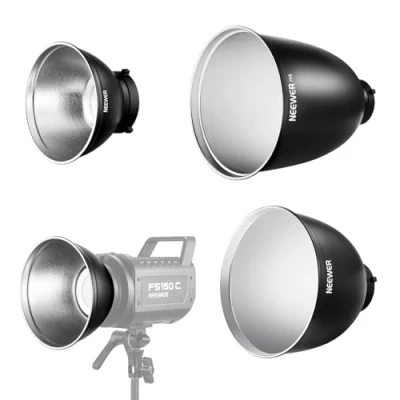 【3Pcs Professional Reflector Set】 The FR18 includes a 7" 55° standard reflector, a 10.6" 65° medium focus reflector, and an 11.6" 45° deep focus reflector. This comprehensive light diffuser kit meets diverse light control needs by concentrating light and enhancing its intensity at different levels, helping reduce bright spots and glare from direct strong light sources, such as flashes, optimizing your shooting results 【Standard Bowens Mount】 All these lighting reflectors are equipped with Bowens mount for flexibly attaching a wide array of Bowens photography lights & stands, compatible with Godox compatible with Aputure NEEWER studio strobes, flashes, speedlites, monolights, etc. The precision design ensures a secure fit, allowing for easy mounting and quick removal 【High Reflective Interior for Even & Focused Lighting】 The exquisite reflective lining (standard reflector with an embossed texture, medium & deep focus reflectors with a frosted texture) gives these diffuser lamp shades the ability to softly distribute light output, reducing direct light and harsh glare without compromising light intensity, resulting in bright captures with natural light and shadow transition 【Wide Application】 This three in one photography light modifiers set effortlessly covers a diversity of of shooting scenarios, including fashion portraits, creative video shoots, stage lighting, commercial product photography, themed live streaming, professional interviews, and more 【Lightweight Robust Aluminum Alloy】 Built with premium aluminum alloy, our photography light reflectors are sturdy, anti rust, and impact resistant. They also help protect your lamp head from rain, sand, and other potential damage