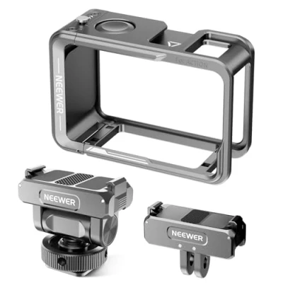 NEEWER Action Camera Cage Kit Compatible with DJI Osmo 5 Pro 4 3 Mic, Protective Frame Accessories Quick Release Cold Shoe Mount & Magnetic Adapter, AC011+AC012+ AC014
