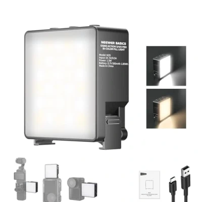 【Introducing NEEWER BASICS】 Simple and practical, NEEWER BASICS is an economical product line that focuses on essential functions and designs, without unnecessary extras and materials 【Adjustable Lighting】 The small LED panel fill light attachment, compatible with DJI OSMO NANO ACTION 3/4/5 PRO camera cage accessories, offers 4 CCT modes, 4 brightness levels, and CRI95+ to meet video recording, streamer streaming, selfie photo and vlogging lighting 【Quick Magnetic Setup】Strong side magnets and plastic locking buckles snap onto your camera cage instantly and securely, also compatible with NEEWER AC009 PRO Cage for OSMO Pocket 3. Ideal camera and photo lighting for on the go vlog video recording and travel films 【Compact & Lightweight】 The LED camera video light equipment is only 1.73"x1.61"x0.98" and 1.27oz, essential & must have portable lighting gear for YouTube TikTok content creator & social media influencer video filming, streamer streaming, selfies, photography 【Built in 500mAh Battery】 The NEEWER mini LED soft panel light provides up to 90 minutes of continuous lighting use at full brightness for extended filming, photoshoots & videography. Easily recharges using a portable charger or other USB power sources via USB C