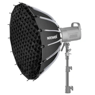 【Introducing NEEWER BASICS】 Simple and practical, NEEWER BASICS is an economical product line that focuses on essential functions and designs, without unnecessary extras and materials 【Professional Parabolic Softbox】 The deep, parabolic softbox measures 25.6" x 14.2" (65 x 36 cm) and features a silver internal coating on thick nylon that broadens and softens light while maintaining color accuracy. It includes two light diffusers and a honeycomb grid for optimal output. At 2.6 lb (1.17kg), the collapsible softbox easily fits in the included drawstring bag for easy transport, ideal for portraits, product photography, beauty & fashion shoots, weddings, and corporate headshots 【Lightweight Nylon Alloy Quick Folding Design】 Pull up the ribs to unfold and lock this softbox in seconds, then just push and hold the quick release buttons to fold up. 16 highly resilient ribs bring incomparable durability and an impeccable shape that can withstand tens of thousands of presses without deformation. Even the mounting plate is upgraded with nylon alloy to ensure its lightweight yet sturdy design that is robust, anti rust, and can withstand daily wear 【Honeycomb Grid & Diffusers】 The internal and external diffusers can be combined for an even softer and more diffused light, and can be fastened via touch fasteners for easy assembly. The kit includes a honeycomb grid to direct light at 45° and reduce spill, providing a distinctive soft yet punchy lighting effect that defines the model's facial structure. Ideal soft box equipment set for studio camera photos, films, photoshoot, streaming, photography, videography, filming, etc 【Standard Bowens Mount】 Seamlessly compatible with Godox SL60w compatible with Aputure 120D 60D compatible with Amaran 100x 150c 600d NEEWER Q4 Vision 4 CB200B RGB CB60 MS60B MS60C MS150B S101-300WPRO/400W Pro and other Bowens mount studio strobe lights and continuous LED video lights. Ideal as content creator essential photography lighting accessories and influencer must have gear