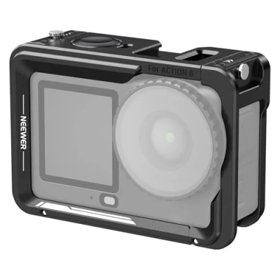 NEEWER Camera Cage for Osmo Action 6, Lightweight Metal Video Rig Stabilizer with Cold Shoe & 1/4" Thread, Compatible DJI Mic Quick Release Magnetic Adapter Accessories, AC054