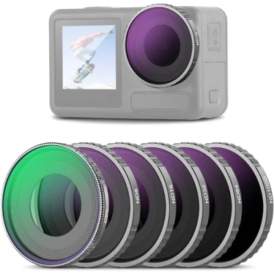 【Only for Osmo Action 5 Pro/4】 ONLY compatible with DJI Osmo Action 5 Pro and Action 4. This filter set features HD optical glass for clear imaging during intensive outdoor activities—perfect for POV shots of surfing, kayaking, skiing, mountain biking, skydiving, skateboarding, and other sports. Note: Not for underwater use, as water will enter and affect the image quality 【Easy & Precise Exposure Control】 ND8, ND16, ND32, ND64, and ND1000 filters reduce the incoming light by 3, 4, 5, 6, and 10 stops respectively. They allow for precise exposure control and prevent overexposure during long exposure photography. By using slower shutter speeds and larger apertures, you can also capture movement with cinematic motion blur effects 【Improved Saturation & Contrast】 The CPL (circular polarizing) filter eliminates reflection on nonmetallic surfaces, such as glass and water, and improves saturation and contrast for vibrant colors 【Multicoated HD Optical Glass】 With 30 layers of protective nanometer coatings on both sides of the HD optical glass, these filters are resistant to water, oil, dust, and scratches 【Ultra Slim & Lightweight Frame】 Each lightweight filter weighs just 0.15oz/4.3g and is crafted with precise CNC machining and a sleek aluminum frame. Designed for easy installation and removal, they fit securely on the lens, while their robust construction ensures stability during intense movements 【Important Note】 Please remove the original lens before filter attachment. If you'd rather not remove the lens, check out our snap on filter series for Osmo Action 5 Pro and Action 4