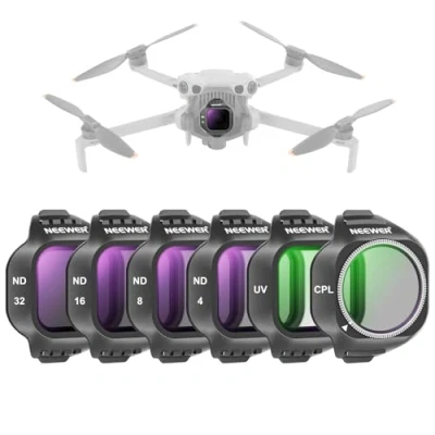 【Designed for Mini 5 Pro】 Compatible with DJI Mini 5 Pro Drone, Mini 5 Pro Camera Drone Fly More Combo, and Combo Plus Accessories for aerial photography and video recording. Multicoated optical glass resists water, dust, fingerprints, and scratches 【Minimizes Haze & UV Rays】 UV filter effectively eliminates haze and blocks UV rays to protect the camera lens, also as a permanent lens protector without degrading color accuracy 【Flexible Exposure Control】 ND4, ND8, ND16, ND32 neutral density filters reduce light by 2, 3, 4, 5 stops respectively to prevent overexposure in different conditions and let you capture rivers, waterfalls, and light trails with dynamic motion blur 【Minimal Glare, Rich Colors】 Circular polarizer filter (CPL) eliminates reflections from water, glass, and other nonmetallic surfaces while improving contrast and saturation for vibrant colors. Rotate the frame to get desired polarization effects with ease 【Quick Snap On Attachment】 Hold the camera, align, and snap the filter on from top to bottom until it locks in place. The 0.04oz/1g lightweight frame preserves gimbal balance and accuracy as content creator essential and influencer must have gear