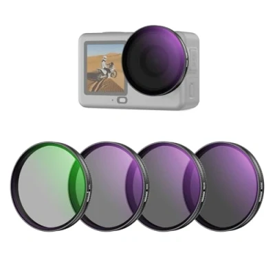 【Made Only for Osmo Action 6】 Only compatible with DJI Osmo Action 6 and its combo accessories—as a content creator essential and influencer must have photo gear for POV action camera photography 【Flexible Exposure Control】 ND8, ND16, and ND32 neutral density filters provide 3, 4, and 5 stops of light reduction, allowing balanced exposure in various environments and creative motion blur effects 【Minimal Glare, Rich Colors】 Adjustable circular polarizer filter minimizes reflection and glare on glass, water, and other nonmetallic surfaces while enhancing saturation and contrast for a vibrant color rendition 【Multicoated HD Optical Glass】 HD optical glass ensures exceptional image clarity. Multiple protective coatings on both sides resist water, scratches, and fingerprints 【Efficient Snap On Attachment】 Directly snap onto the camera lens and start shooting. Nonslip rubber ensures a secure hold during intense sports