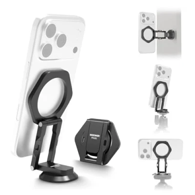 【Dual Magnetic Phone Stand】 The magnetic phone holder stand tripod adapter attaches your smartphone to metal surfaces like refrigerators or gym equipment, as content creator essentials and influencer must haves. Note: Not for bike, motorcycle, or in car use 【Magnetic Attachment】 The tripod phone holder adapter mount is compatible with iPhone Magsafe 17 16 e 15 Pro Max Plus 1413 i Phone 12 Mag Safe case/cover accessories; compatible with Samsung Galaxy S25 S24 Ultra Pixel 10 9 Pro Huawei with the magnetic ring for phone camera photography and filming 【360° Rotation & 180° Tilt】 The phone mount holder supports over 180° tilt, and enables seamless landscape to portrait mode switches, adjustable and extending in height for flexible and steady filming or video recording 【Arca Type Base & 1/4" Thread】 The cell phone holder stand for tripod includes an Arca Type interface and a 1/4" screw hole for connecting to a tripod, selfie stick, or magic arm, and more accessories for versatile use 【Metal Build & Portable Use】 The phone mount for tripod is made of aluminum alloy for strength and durability. Weighing 2.5 oz (72g), it is compact, lightweight, and foldable for tri pod phone camera travel vlogging