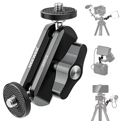 【Dual Ball Head Design】 With two 360° rotatable ball heads, the magic arm lets you capture images and record videos from any angle. They also have a 180° tilt movement through U shaped notches for broadened visions 【Universal 1/4" Screws & Threaded Holes】 Two 1/4" screws can attach the magic arm to a camera cage, top handle, or tripod and mount a field monitor, LED fill light, smartphone holder, microphone, or vlog camera at the same time. The magic arm also has two 1/4" threads for connecting other magic arms and accessories 【Nonslip Rubber Pads】 Rubber pads on the mounting plates feature nonslip patterns for increased stability and fall prevention. Moreover, the soft rubber can protect your device against scratches caused by metal abrasion 【Solid Metal Structure】 Made of CNC machined aluminum alloy, the magic arm can withstand high temperature, humidity, corrosion, and ultraviolet rays for shooting under any circumstance, whether it is indoor or outdoor 【Lightweight & Portable】 Measuring 3.5" x 1.7" x 1" (89 x 42 x 25mm) and only 3oz (84g) in weight, this magic arm can fit inside your backpack, camera bag, or pocket and travel anywhere with you