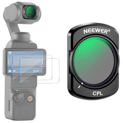 【Fully Compatible with DJI Osmo Pocket 3】 NEEWER magnet circular polarizing filter is compatible with DJI OSMO Pocket 3, featuring an instant and secure magnetic attachment, providing your device with a significant image quality boost whether you're shooting or recording video. Note: If a protective film is applied to the lens, it may interfere with gimbal storage 【High Performance Polarization】 The circular polarizer filter effectively reduces reflected light from non metallic surfaces like glass, water, and snow, dramatically improving image contrast and color saturation for clearer, more vibrant images 【Multi Coated Optical Glass】 Using multi layer premium coating technology, the circular polarising filter effectively reduces lens flare and avoids vignetting, ensuring clarity and detail in the shooting effect 【Easy to Use and Portable】 The polarizing filter is quick and easy to install and change. Each polarized filter comes with a sturdy, hard plastic protective case, providing a safe storage and portable solution, making it convenient to carry and use on the go 【Bonus Tempered Glass Protectors】 Included are two tempered glass screen protectors that provide extra protection for your action camera, safeguarding the screen from scratches, dust, and impacts while maintaining clear visibility and touch sensitivity 【Friendly Reminder】 1. When using wide angle/macro lenses or ND, CPL filters, please do not apply any protective film to the camera. 2. When attached to the Pocket 3, the wide angle lens cannot be used together with ND, CPL, or other filters.