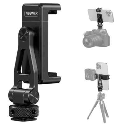 Neewer Metal Phone Tripod Mount with Cold Shoes, 1/4" Thread, 180 Tilt, 360 Rotation, Adjustable Clamp Holder Compatible iPhone 16 15 Pro Max S24 Ultra Camera Cage, GA010
