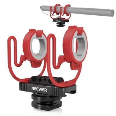 【Reduces Vibration Related Noise】 This shock mount features an elastic suspension mechanism that isolates the microphone from vibrations and handling noise during recording for clear audio. Ideal for YouTube video recording, camera vlogging, live streaming and more as content creator essential accessories and influencer must have equipment 【Universal Cold Shoe & 1/4" Thread】 The cold shoe mount and 1/4" thread can connect to cameras, rigs, boom poles, and tripods. It also supports back and forth positioning for weight balancing 【Built In Cable Management Slots】 Integrated slots help organize and secure cables of various sizes to prevent clutter and interference 【Robust Aluminum Alloy Structure】 Made of premium aluminum alloy, this lightweight yet robust shockmount is perfect for indoor and outdoor recording 【For Most Interview Microphones】 Suits interview microphones 0.7"-0.9"/18-23mm in diameter. Compatible with NEEWER VM15; compatible with Rode NTG Series; compatible with Sennheiser MKE600; compatible with Audio Technica AT875R and more