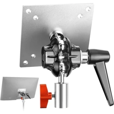 【Support Up to 14lb/6.3kg Monitors/Panels】 Solidly constructed with premium aluminum alloy, this monitor mount adapter can stabilize a monitor up to 14lb (6.3kg) in weight. It is ideal for mounting monitors, displays or TVs of different sizes and can be used for meetings, presentations, public spaces or for production teams to view reference videos or materials 【Dual Ball Joints for Flexible Positioning】 Two grooved ball joints allow you to tilt the monitor at 180° or rotate it at 360° for vertical and horizontal viewing angles 【Standard M4 Screws & VESA Plate Compatibility】 Four M4 x 10mm screws, four M4 x 12mm screws, and four M4 x 14mm screws enable secure and reassuring attachment to a monitor with different thread depths. The 75mm and 100mm VESA mount is compatible with most monitors on the market 【Fits Most Light Stands with Adjustable 5/8" Stud】 The mount adapter, secured by a hand tightened screw knob, is designed to securely connect to a variety of light stands or accessories with a maximum stud or pin diameter of 5/8" (16mm). Note: Light stand is Not included 【Long Lever Metal Handle】 The long lever handle lets you achieve optimal angles and lock the mount adapter in place even with the monitor installed. The rugged aluminum alloy material offers better grip and durability, and is not easily damaged to withstand numerous adjustments and adapt to different climatic environments