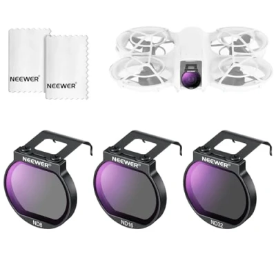 【Compatible with DJI NEO Drone】 Compatible with DJI NEO Drone, this drone camera lens filter accessories kit includes an ND8, an ND16, and an ND32 filter for professional aerial photography and videography as content creator essential gear and influencer must have equipment 【Effortless Exposure Balance】 ND8, ND16, and ND32 filters reduce the light by 3, 4 and 5 stops respectively, suitable for long exposure photography in bright outdoor conditions. They allow you to shoot at slower shutter speeds with larger apertures and capture movements with expressive motion blur effects 【Lightweight & Rigid Structure】 Frames crafted from robust and lightweight metal will not add unwanted weight to your drone and suit various outdoor environments 【Multicoated HD Optical Glass】 HD optical glass ensures high clarity and accurate color reproduction. Multiple coatings on both sides of the glass are resistant to water, fingerprints, smudge, and scratches. A cleaning cloth is included for daily maintenance 【Secure Snap On Attachment】 Snap on design ensures quick attachment and removal, while a hook keeps the filter firmly in place during flight. The slim and lightweight metal frame prevents vignetting and will not affect the use of the gimbal protector
