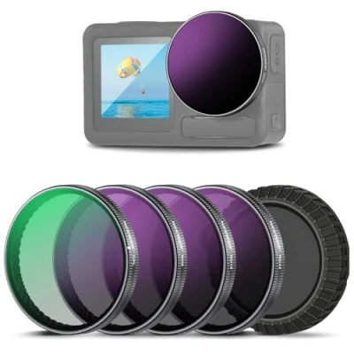【For Action 5 Pro / 4 / 3】 This filter kit is compatible with DJI Osmo Action 5 Pro, Action 4, and Action 3 for POV shots of kayaking, skiing, cycling, skydiving, skateboarding, and hiking 【Precise Exposure Control】 ND8, ND16, and ND32 filters reduce light by 3, 4, and 5 stops respectively. They offer precise exposure control in different conditions, prevent overexposure in long exposure photography, and add dynamic motion blur 【Minimal Glare, Rich Color】 The circular polarizer filter minimizes reflection on nonmetallic surfaces and boosts saturation and contrast for vibrant colors 【Multicoated HD Optical Glass】 HD optical glass ensures exceptional image clarity. Multiple nanometer coatings on both sides are resistant to water, scratches, and fingerprints 【Fast Snap On Attachment】 Instantly snap onto the camera lens. A lens cap and cleaning cloth are included as content creator essential and influencer must have action camera accessories