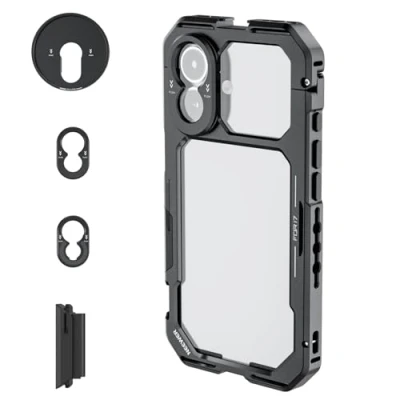 【Compatible with iPhone 17 Only】 Aluminum alloy frame and shockproof linings shield your cell phone during daily use. 3 interchangeable backplates connect filters and lenses for creative shots. Note: Open top bracket before mounting backplates 【Quick Release Mechanism】 Phone cage video rig opens and closes via a side lock and is compatible with MagSafe charging. Removable silicone cap keeps Camera Control accessible and includes a replacement cap 【67mm Filter Adapter Ring】 Connects 67mm camera lens filters (CPL, ND, and black diffusion) for creative mobile photography and video recording without vignetting (filters sold separately) 【17mm Phone Lens Backplate】 Connects 17mm threaded NEEWER phone attachment lenses (such as 7x Telephoto Lens) to the Main Camera to transform your smartphone into a professional shooting device (lenses sold separately) 【T Mount Lens Backplate】 Compatible with Moment T Series lenses for YouTube/TikTok vlogging, filming, live streaming, and video recording (lenses sold separately)