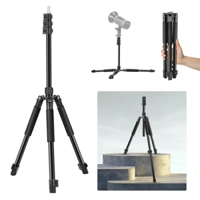【Versatile Compatibility】 NEEWER ST195 photography tripod stand has a 1/4" screw to attach a wide range of photography devices more than just strobe lights, such as continuous output lighting, ring lights, LED video lights, monolights, softboxes, umbrellas, and action cameras. Whether it's product shooting, portrait photography, or outdoor captures, this tripod stand has you covered. 【Aluminum Light Stand with 4.4lb/2kg Load】 Constructed of robust aluminum with an anodized finish, our studio light stand is rust proof and built to last with an impressive load capacity of up to 4.4lb/2kg. It is a professional shooting accessory to support your strobe light or other equipment. 【1.5-6.4ft/47-195cm Height Adjustment】 The center column of this heavy duty light stand consists of three sections that expand from 1.5-6.4ft/47-195cm to fulfill different mounting positions of your equipment. Between each two sections, there is a snap lock to secure after adjustment. Don't worry about it wobbling during use. 【Stable Tripod Base of Adjustable Legs】 The two section telescopic legs allow for 3 unfolding angles, easy to spread and secure through the snap design. Spread out the legs until the center column touches the ground, and the angle reaches its maximum for enhanced stability of the stand. 【Lightweight & Portable with 180° Reversible Legs】 The reversible tripod legs can flip up and down by 180°. The stand is just 1.4ft/44cm after fully collapsed, making it highly convenient for storage and transportation. Portable and weighing only 2.2lb/1kg, it is perfect for travel photographers and outdoor content creators. 【Important Notice】Overloading or applying lateral force to mounted equipment may result in damage to the tripod's top metal joint. Please ensure the load remains within the recommended weight limit specified in the product description.