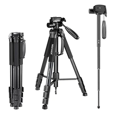 NEEWER Portable Camera Tripod for Travel Vlogging Recording, Aluminum Alloy 2 in 1 Monopod Max. 70" with 3 Way Swivel Pan Head and Carrying Bag DSLR, DV Video Camcorder (SAB264, Black)