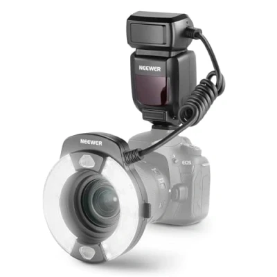 NEEWER RF1 C Marco Ring Flash Compatible with Canon, 76Ws GN15 5600K E TTL Lighting, 1 1/128 Output, Front/Rear Curtain Sync, Color Gels, Lens Adapter Rings for Macro Photography