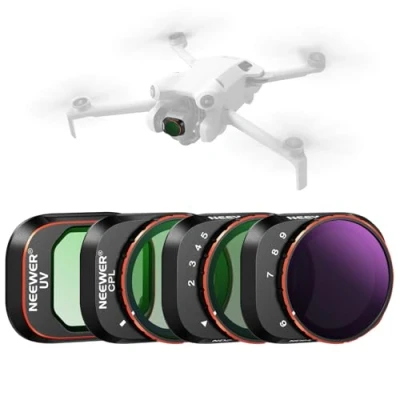 【Dedicated to Mini 4 Pro Drone Lens】 Precisely CNC machined to be exclusively compatible with the DJI Mini 4 Pro. This ND & CPL filter kit is a game changer for all drone enthusiasts seeking to fine tune shutter speeds, reduce flare, enhance color, and achieve perfect exposure in different weather conditions. Made of aircraft level aluminum alloy, the lightweight 0.11oz/3.2g filters won't interfere with drone calibration and balance 【Limited Variable Neutral Density Filter】 The ND2-32 filter with 1 to 5 stops of light reduction is suitable for moderate lighting conditions, enabling slower shutter speeds and wider apertures. The ND64-512 filter with 6 to 9 stops of light reduction is more appropriate for bright lighting situations. It allows for longer shutter speeds, even in intense light, offering creative effects such as smooth waterfalls or blurred motion 【Vivid Color Reproduction with CPL/UV Filter】 Elevate your visuals in bright sunlight with the CPL filter, darkening skies and reducing glare from nonmetallic surfaces (such as water, glass, and window) for vivid color and contrast. The UV filter blocks ultraviolet rays and eliminate the bluish cast in images 【Both Side Multi Coated HD Optical Glass】 With multiple layers of multi functional coatings on both sides of the HD optical glass, these filters are water repellent, scratch resistant, and oil proof, ensuring long lasting optical quality in challenging environments 【Lightweight Ultra Slim Frame】 Crafted with precision CNC machining and an ultra slim aluminum frame, each lightweight filter seamlessly fits the drone lens, ensuring no impact on flight stability or performance. Come with a compact carrying case and a cleaning cloth for easy storage and maintenance