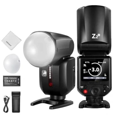 【Enhanced UI and TTL/M Mode Switch】 This NEEWER Z2-C speedlight features an upgraded UI and a TCM key that switches from TTL to M mode in a second. The off camera flash also supports automatic metering, 1/1-1/256 manual dimming, 28-105mm focal length, stroboscopic flashes, focus assist, 1/8000s HSS, front/rear curtain sync, FEC/FEB/FEL (flash exposure compensation/bracketing/locking), S1/S2 optical slave modes and more. Note: please upgrade to the latest firmware from the official website 【Magnetic Dome Diffuser & Flexible Angles】 The 76Ws photography strobe features a circular Fresnel flash head, aided by the included magnetic dome diffuser, ensuring even, soft, natural light effects with 5600K (±200K) stable color temperature. The flash head allows for 0-330° swivel and -7-120° tilt, and automatically or manually adjusts the flash coverage for lenses between 28-105mm. Two upgraded 2W 3300K (±200K) LED modeling lamps (one below the flash head) offer 10 brightness levels (01-10) 【Built in 2.4G Wireless Q System】 The external off camera flash offers four wireless control groups (A/B/C/D), 32 channels (1-32), and 99 IDs (1-99) for use with the QPRO-C TTL transmitter (not included). It also functions as a master/slave unit for other Q system flashes within 328'/100m (no obstacles). Also compatible with GODOX X System after upgrading to the latest firmware 【High Capacity & Fast Recycling】 The 7.2V/3000mAh lithium ion battery provides 600 full power flashes, 1.5s fast recycling time, and a 1/180-1/20000s flash duration. Use the built in USB Type C port to fully charge the li ion battery in just 2.5 hours (5V/2A power adapter not included). Firmware update is also available via the Type C port. Ideal NEEWER studio camera photoshoot light as content creator essential photo lighting equipment kit and influencer must have photography gear 【Compatible with Canon Camera】 The flash speedlight for photography lighting accessories is compatible with Canon EOS R R3 R5 R5C R6 R6II R7 R10 M3 M6 M6II M50 M50 Mark II 7D Mark II 7D 6D Mark II 6D 5D Mark IV III II 1D Mark III II 1DX 1500D 2000D 3000D 4000D 850D 800D 760D 750D 650D 600D 550D 500D 450D 90D 80D 70D 60D 50D 1100D 77D SL3/250D T100 T7 T7i T6s T6i cameras (NOT compatible with RP R50)