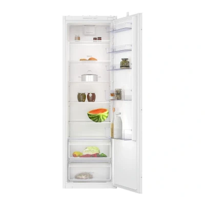 You shouldn't have to put up with sad-looking salads at dinner time. This Neff fridge's Fresh Safe drawer gives you a dedicated space for your fruit and veggies. They stay crisp and tasty for longer which means less waste. The height-adjustable shelves let you make room for taller or bulkier items like bottles or a whole chicken. And the Super Cooling function quickly drops the temperature so it's handy when you've just done a food shop. It returns to its normal settings automatically and can be set via the Home Connect App.Good to know- Flex Door Storage gives you two rows of space for bottles - perfect if you're expecting guests- Its handleless design and reversible door make it easy to fit into your kitchen setup- The safety glass shelves are built tough so you can load them up with all your favourite food- A handy alarm lets you know if the door has been left open so nothing goes bad___________________________________________________________________________PLEASE NOTE:- Use in outbuildings: This refrigerator is not designed to be used in an outbuilding - both your food and the appliance can be damaged. Do not use it in any unheated area.- Reversible door hinges: This appliance has a reversible door. Please consult a qualified installer, such as one of our Tech Experts, to carry out door reversal - select the door reversal service when you add this product to the basket.