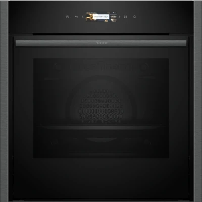 NEFF N70 B54CR71G0B Slide and Hide Single Oven with Pyrolytic Self Cleaning, CircoTherm, 3.7" Full Touch Display, Soft Open, Integrated, 60 x 60cm, Graphite Grey