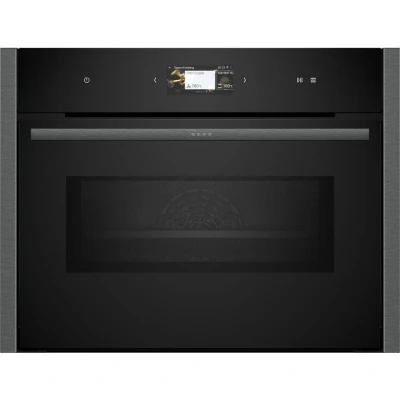 NEFF N90 C24MS71G0B Compact Oven with Microwave Function, 4.1" Full Touch Display, Inverter Technology, Pyrolytic Self Cleaning, Soft Close and Opening Door, 60 x 45cm, Graphite Grey