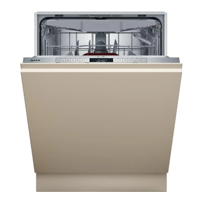 This Neff dishwasher goes the extra mile for your dishes. The ExtraDry option gets those awkward, hard-to-dry items cupboard-ready first time. It means you won't be reaching for the tea towel before you can put them away. With ExtraSpeed, you can slash wash times by up to 66% without skimping on the clean. That'll come in handy when you need some clean bowls for dessert. And the Chef 70°C program washes at higher temperatures and uses more powerful sprays to blast away stubborn stains. It's perfect for your pots, pans and baking trays.Good to know- When you need a little quiet, the Silence on Demand function pauses the cycle and reduces noise to a minimum- The Rackmatic system makes it easy to adjust the height of the top basket, even when it's fully loaded- Its Flex 2 baskets have foldable flip tines so you can make room for awkward items like glasses and chopping boards- There's space for 14 place settings so it's ideal for busy families - no more arguing over who's going to do the dishes