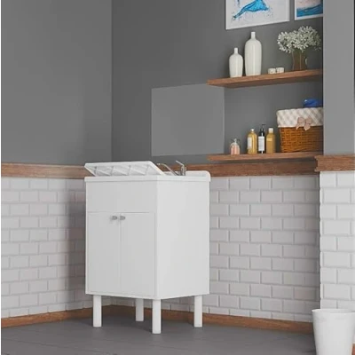 PVC resin washbasin cabinet with door, weather-resistant and moisture-resistant, suitable for placing in damp rooms (terraces, garages, porches). Dimensions: width 60 cm – depth 50 cm – height 85 cm The practical compartment with door closure allows you to store all the essential items for the laundry (bottles, bottles, sponges, etc) Mirror 45 x 60 cm reversible PP resin bowl, including washing board, UV and all common acids. The unit is supplied in a mounting kit (can be assembled in a few minutes), and is equipped with a self-cleaning siphon and overflow drain. Made in Italy